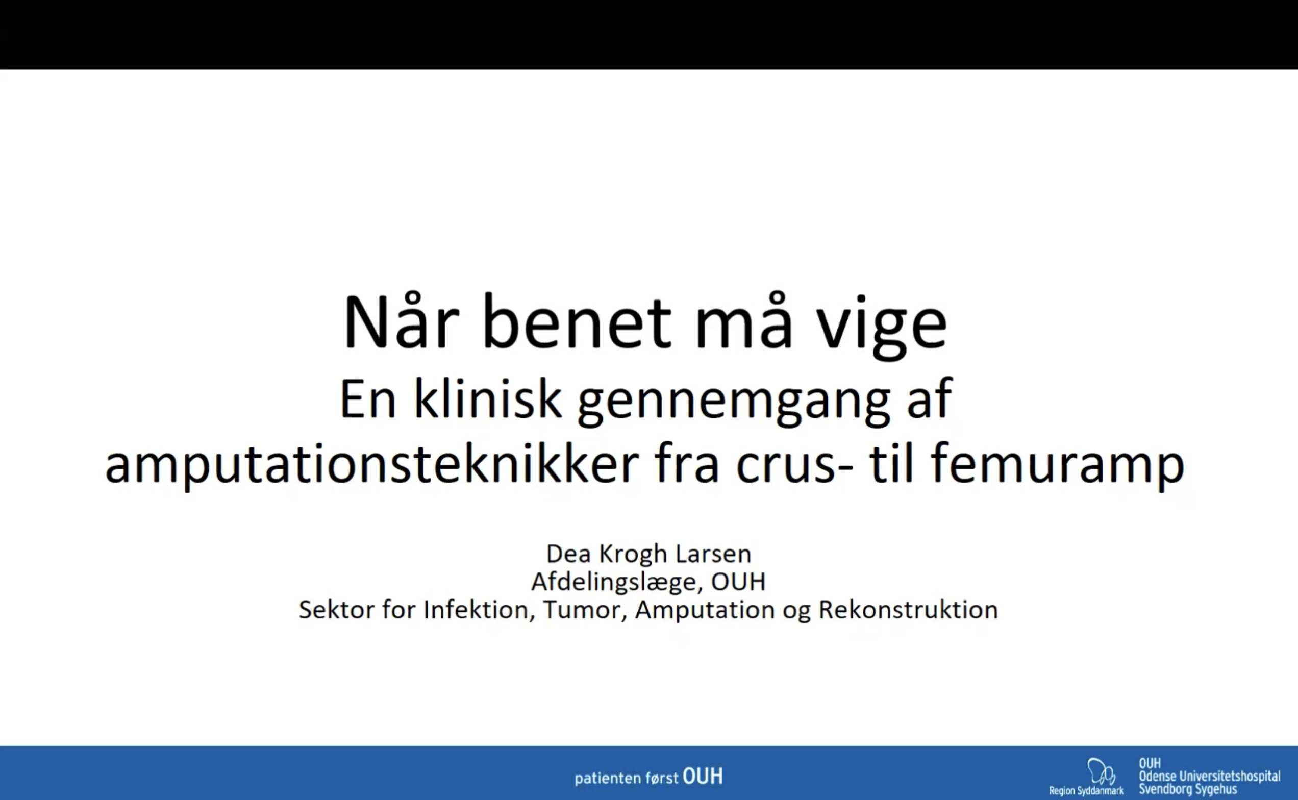 På webinaret giver Ortopædkirurg Dea Krogh Larsen en kirurgisk gennemgang af de mest anvendte amputationsmetoder på underekstremiteten – fra underben til lårben. Der bliver fokuseret på snitføringer, flapvalg og muskel-/nervehåndtering, og diskuteret fordele og ulemper ved de klassiske teknikker som Skew flaps, Greene–Stokes, anteriore/posteriore flaps mfl. Fokus er udelukkende på den operative udførelse og de tekniske detaljer, der danner grundlag for optimal heling, funktion og senere protesetilpasning."